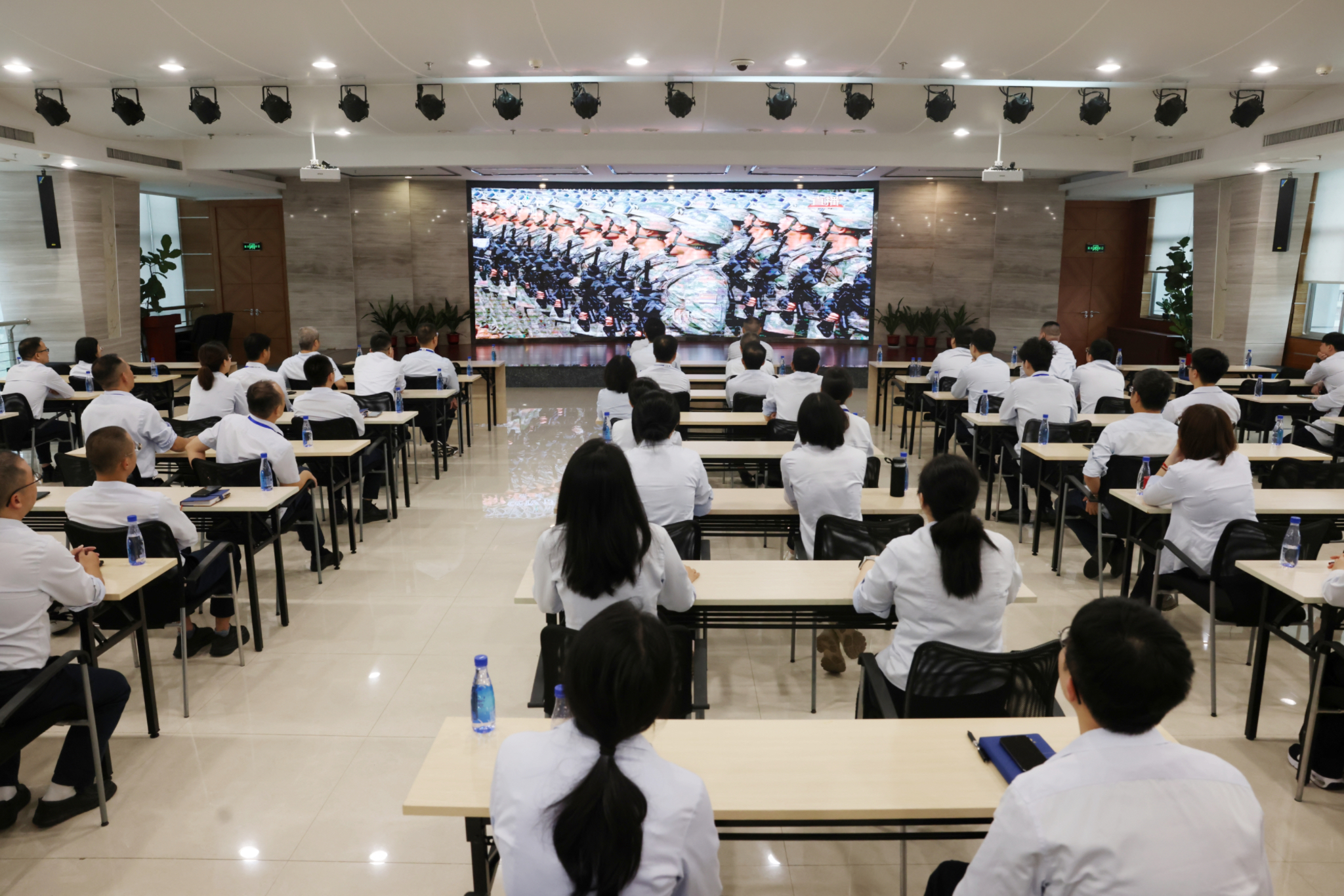 觀看過程中,全體人員神情莊重,認真聆聽習近平總書記重要講話,聚焦閱兵式上威武的受閱方陣、先進的裝備展示與昂揚的精神風貌。當雄壯的國歌奏響、整齊的隊伍邁過檢閱臺時,現(xiàn)場不時響起陣陣掌聲,大家深刻感受到中國人民反抗侵略的堅定意志,以及新時代國家的強盛與民族的自信。