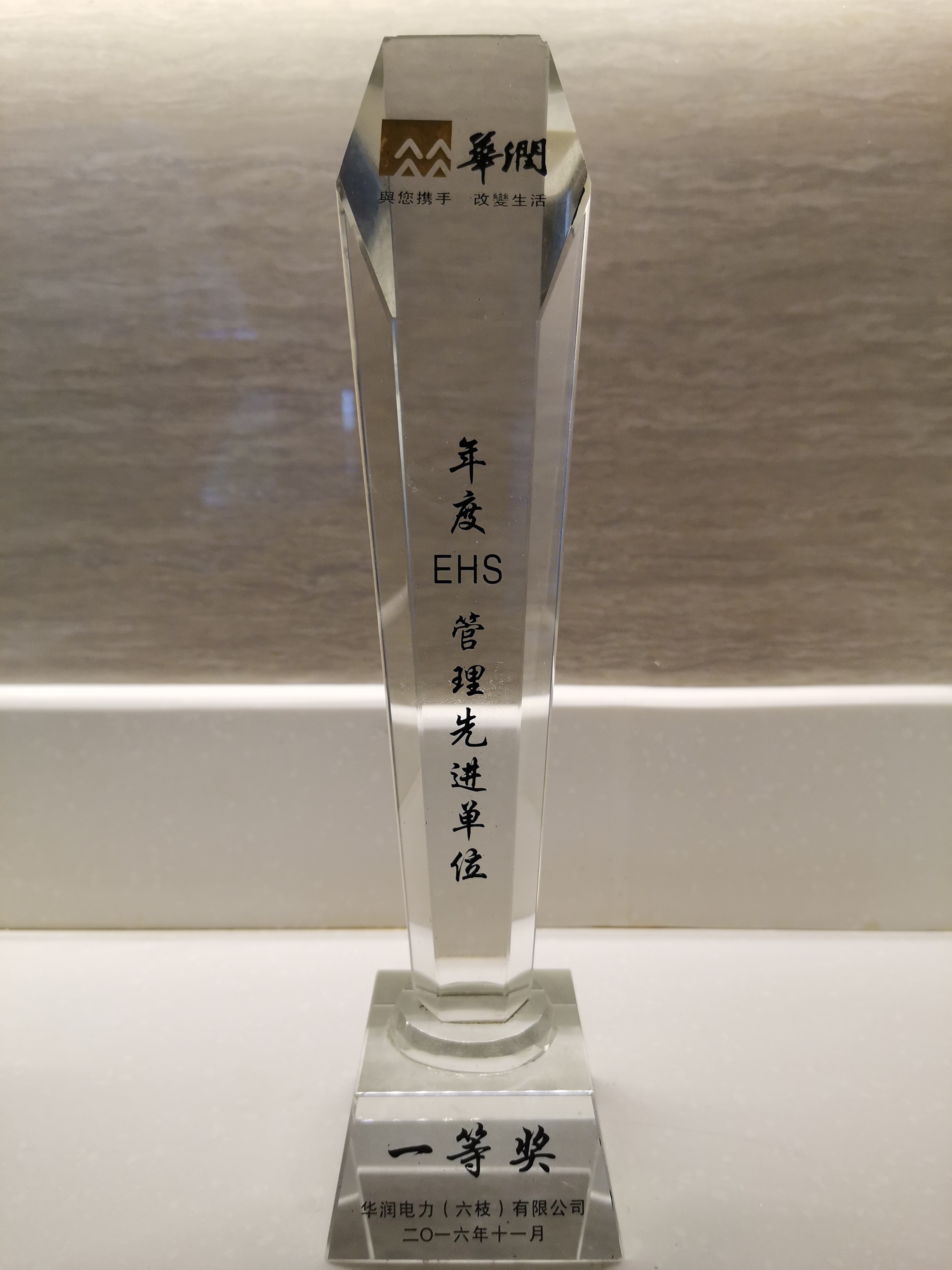 2016年獲得華潤電力西南大區(qū)頒發(fā)的“年度EHS管理先進(jìn)單位 一等獎(jiǎng)”