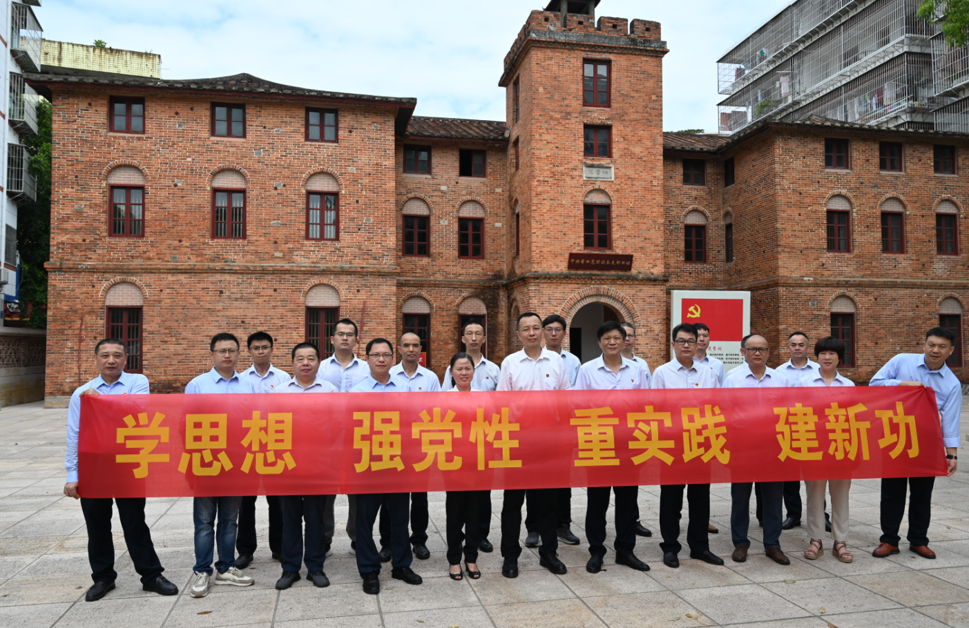 7月19日上午,公司黨委組織中層以上管理人員到荔城區(qū)哲理鐘樓開展現(xiàn)場教學(xué)活動(dòng)?!罢芾礴姌鞘侵泄查}中地方組織的誕生地,素有‘閩中革命搖籃’之稱……”在講解員聲情并茂的講解中,廣大黨員領(lǐng)導(dǎo)干部詳細(xì)了解了閩中黨組織發(fā)展的光輝歷程。鐘樓里,一句句記錄歷史的文字,一張張裝滿回憶的圖片,一件件承載故事的實(shí)物,讓大家深刻感受到革命先烈在紅色精神的洗禮下,前仆后繼為革命事業(yè)獻(xiàn)身的大無畏精神,更加堅(jiān)定了共產(chǎn)主義理想信念。