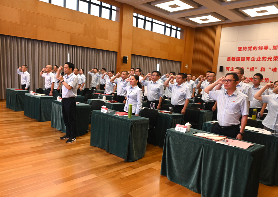 在鄧輝昌的帶領(lǐng)下,全體黨員佩戴黨員徽章,面對(duì)鮮紅黨旗,莊嚴(yán)重溫入黨誓詞。“我志愿加入中國(guó)共產(chǎn)黨,擁護(hù)黨的綱領(lǐng),遵守黨的章程……”錚錚誓言在會(huì)場(chǎng)回響。重溫誓詞是對(duì)信仰的強(qiáng)化,將進(jìn)一步激勵(lì)公司黨員增強(qiáng)黨員身份意識(shí)、責(zé)任意識(shí),堅(jiān)定理想信念,嚴(yán)守黨的紀(jì)律,不忘初心、牢記使命,發(fā)揮好黨員先鋒模范作用,以實(shí)際行動(dòng)為黨旗增光添彩。