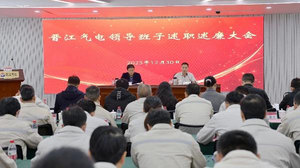 12月30日上午,晉江氣電公司召開(kāi)2025年度領(lǐng)導(dǎo)班子及領(lǐng)導(dǎo)人員考核述職述廉大會(huì),福建省能源石化集團(tuán)第一考核組對(duì)公司領(lǐng)導(dǎo)班子及領(lǐng)導(dǎo)人員進(jìn)行年度考核。晉江氣電公司領(lǐng)導(dǎo)班子成員、中層管理人員和員工代表、退休職工代表等共39人參加會(huì)議。會(huì)議由公司黨委書(shū)記、董事長(zhǎng)周穎馳主持。